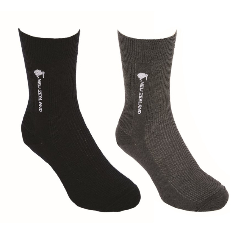 These socks have a ribbed leg with a firm elasticised top and an attractive New Zealand logo with a small kiwi and the words "New Zealand" down the ankle.