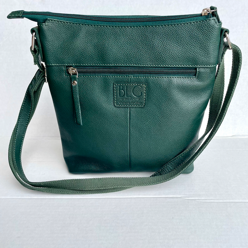The Baron Leather Handbag Medium is a great practical bag for everyday life. Made from premium, soft leather, this versatile piece is stylish while offering the durability you expect from a heritage quality bag. The natural animal leather has unique wrinkles which add to both the uniqueness and beauty of this bag. Designed with a structured silhouette, this bag fits seamlessly into both professional and casual wardrobes. The medium size offers ample space for your daily essentials such as your phone, wallet, keys, tablet, without feeling bulky. This bag despite not being bulky has plenty of room for all your daily necessities with a main section has a zip up pocket within and an open pocket. Along with the main section this bag also has a large back zip pocket and medium front zip pocket for extra storage space. All pockets and compartments lined with deep green fabric to match the bag. The strap on this bag is half woven fabric half leather for sturdy but stylish look.