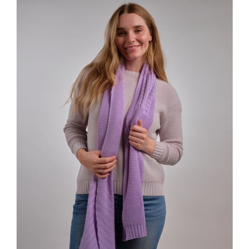 The Country Laine - Merino Textured Scarf is knitted in New Zealand from ultra fine 19.5 micron merino wool. Fine 19.5 micron merino wool is ultra soft to touch and does not cause any of the itch that can arise with non merino coarse wools. This medium weight scarf drapes well and measures 26cm / 192 cm or 10 inches / 75 inches. A feature of this scarf is the attractive mix of textural stitches on the scarf featuring ribbed stitching, cables, box and diagonal stitching. A great scarf to wear in winter with a coat or sweater or a lovely gift.