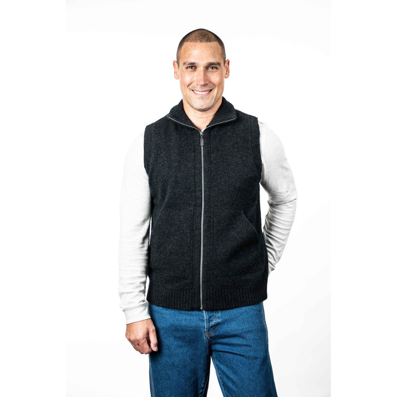 The Koru Merino and Possum Zip Vest is a gorgeous garment knitted in New Zealand from a blend of three natural fibres, 50% merino lambswool, 40% possum fur and 10% mulberry silk. Koru's special blend with such a luxuriously high percentage of possum fur results in a vest that provides the ultimate in warmth and softness. This essential everyday piece features ribbed detailing and practical front pockets for a relaxed yet polished feel. Wear with denim or chinos for an elevated off duty look. Each Koru cardigan is is individually knitted, cut and expertly assembled by highly skilled staff resulting in a truly premium product that will provide you with years of wear. This garment is designed to be hand washed and rinsed in cool water. It may be spun gently in the washing machine to remove excess water. Do not iron or tumble dry but dry flat on a towel easing it into shape. It may also be dry cleaned.
