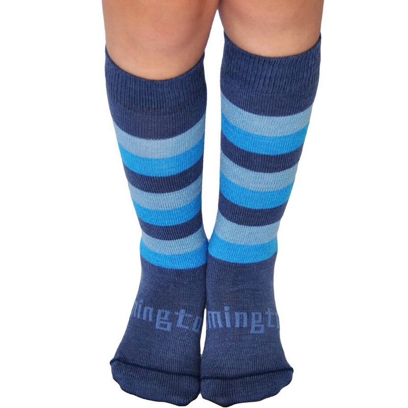 Keep your little ones feet toasty warm with these bold blue striped 'Atlantic' merino wool socks.