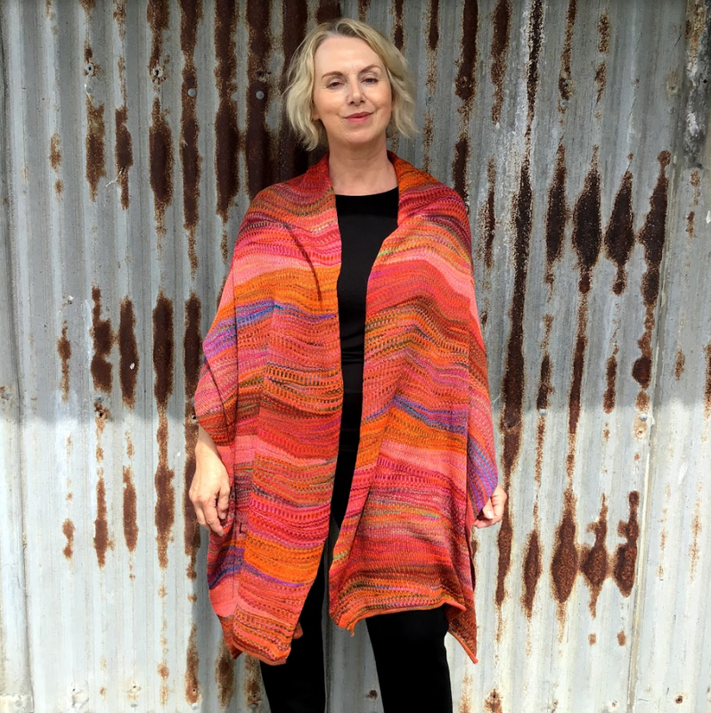 - Each wrap is individually knitted on a hand operated manual knitting machine. Photos represent the different colour variations and tones available, but no two wraps are identical.