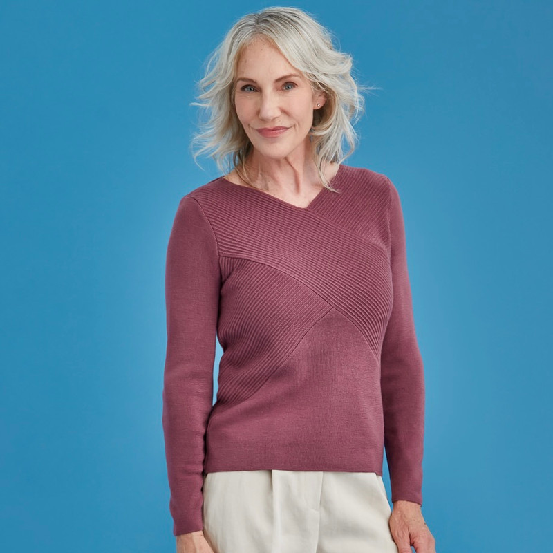The Royal Merino Rib Wrap V Jumper features a flattering V-neckline and a stylish ribbed wrap detail across the front, offering both comfort and sophistication.