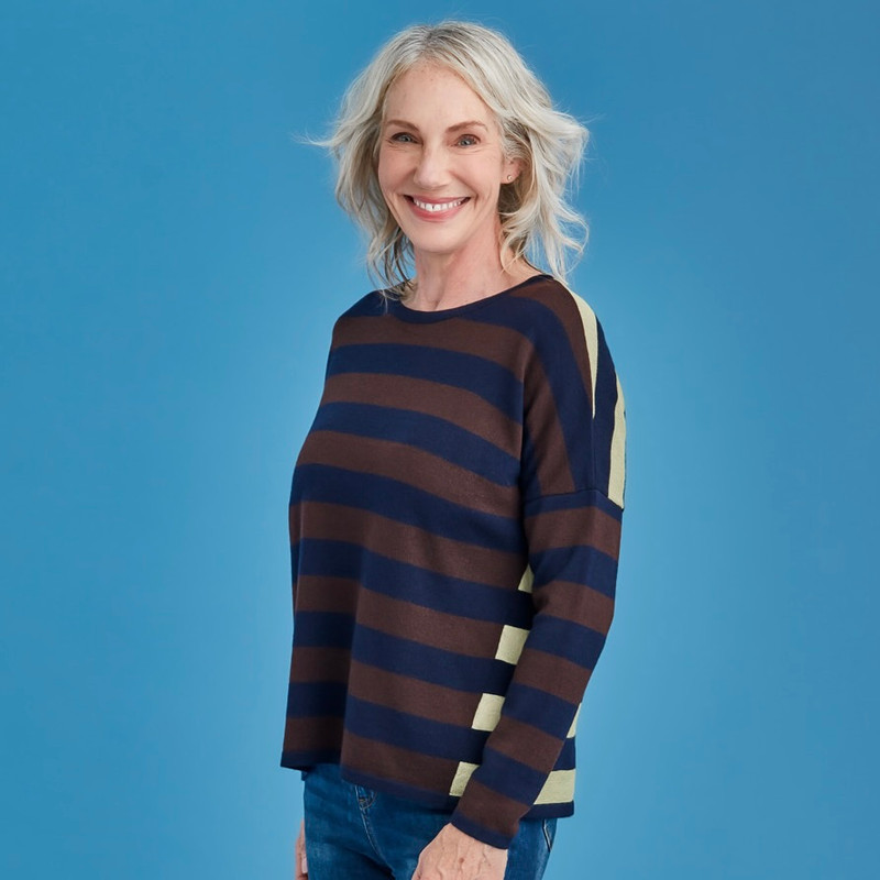 The Striped Drop Shoulder Sweater is a classic striped trans-seasonal piece. Perfect for everyday wear - wear it alone on warmer days and layer up on those cool days. The jumper features a slightly drop shoulder style to give it an ultra feminine feel. The garment is designed for a regular fit.